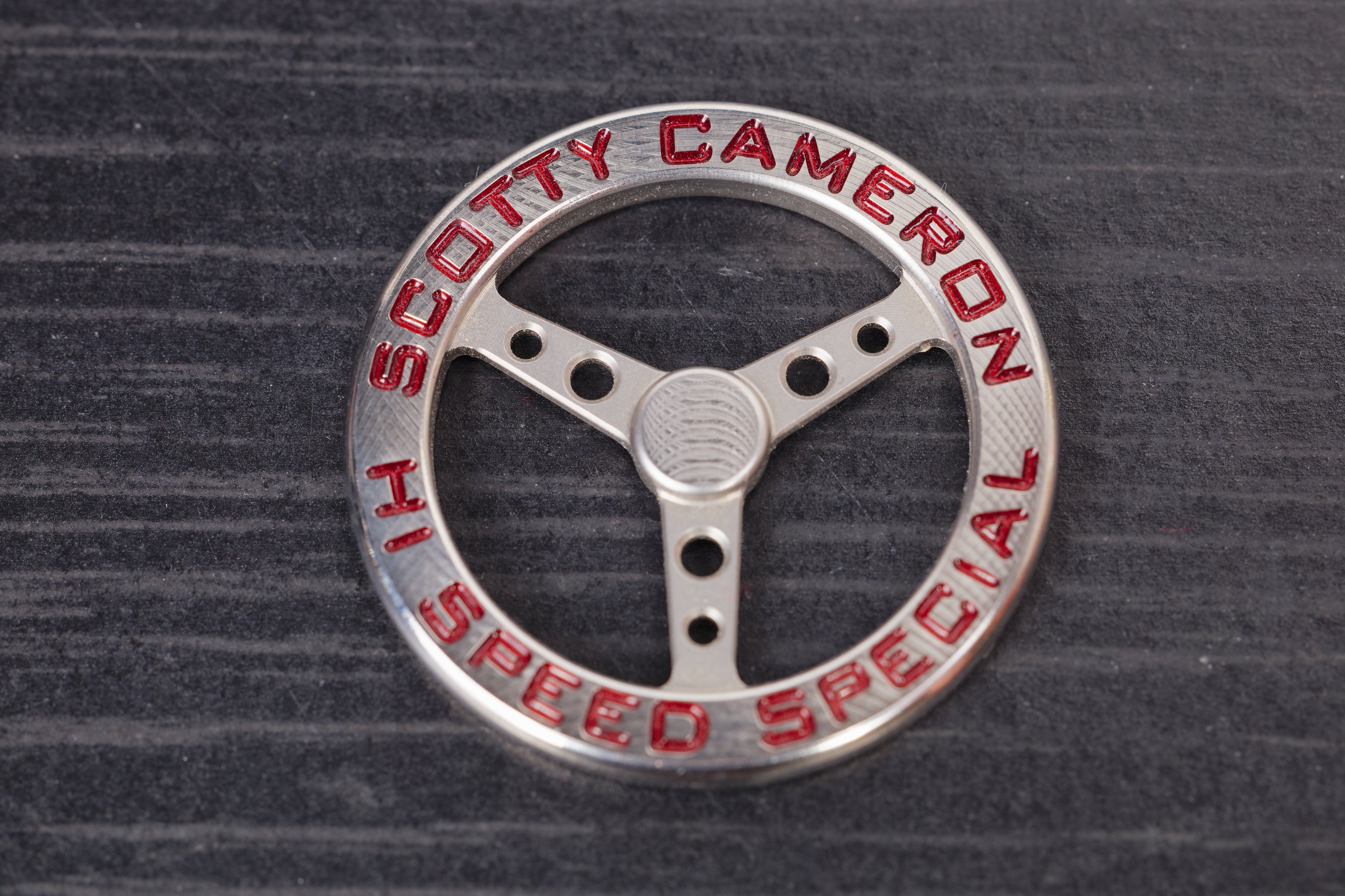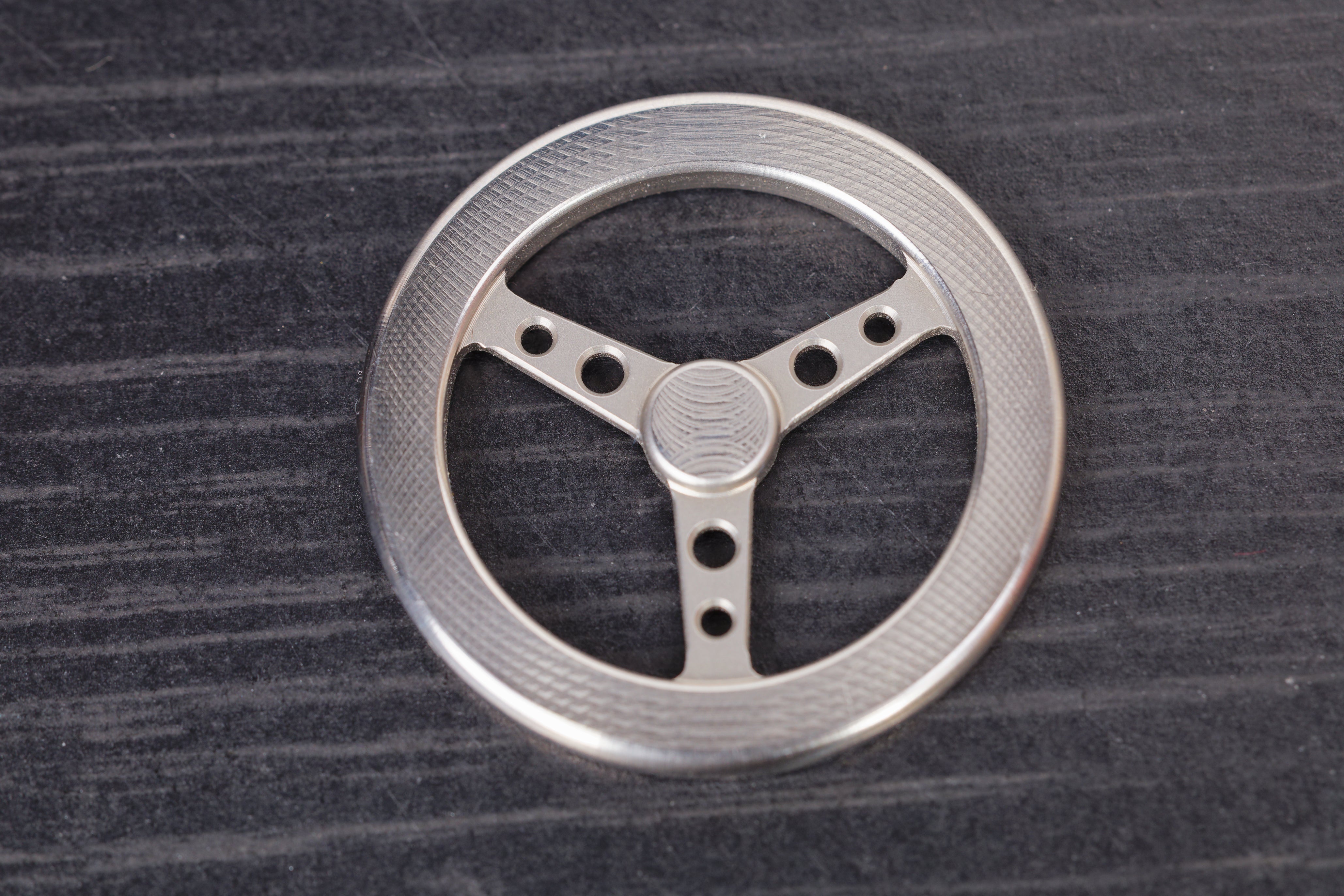 Condition: 9.5/10 AdditionalInfo.: Beautiful marker, in the style of a steering wheel, that has been expertly milled and buffed to a flawless shine. Very light marks from storage/use.