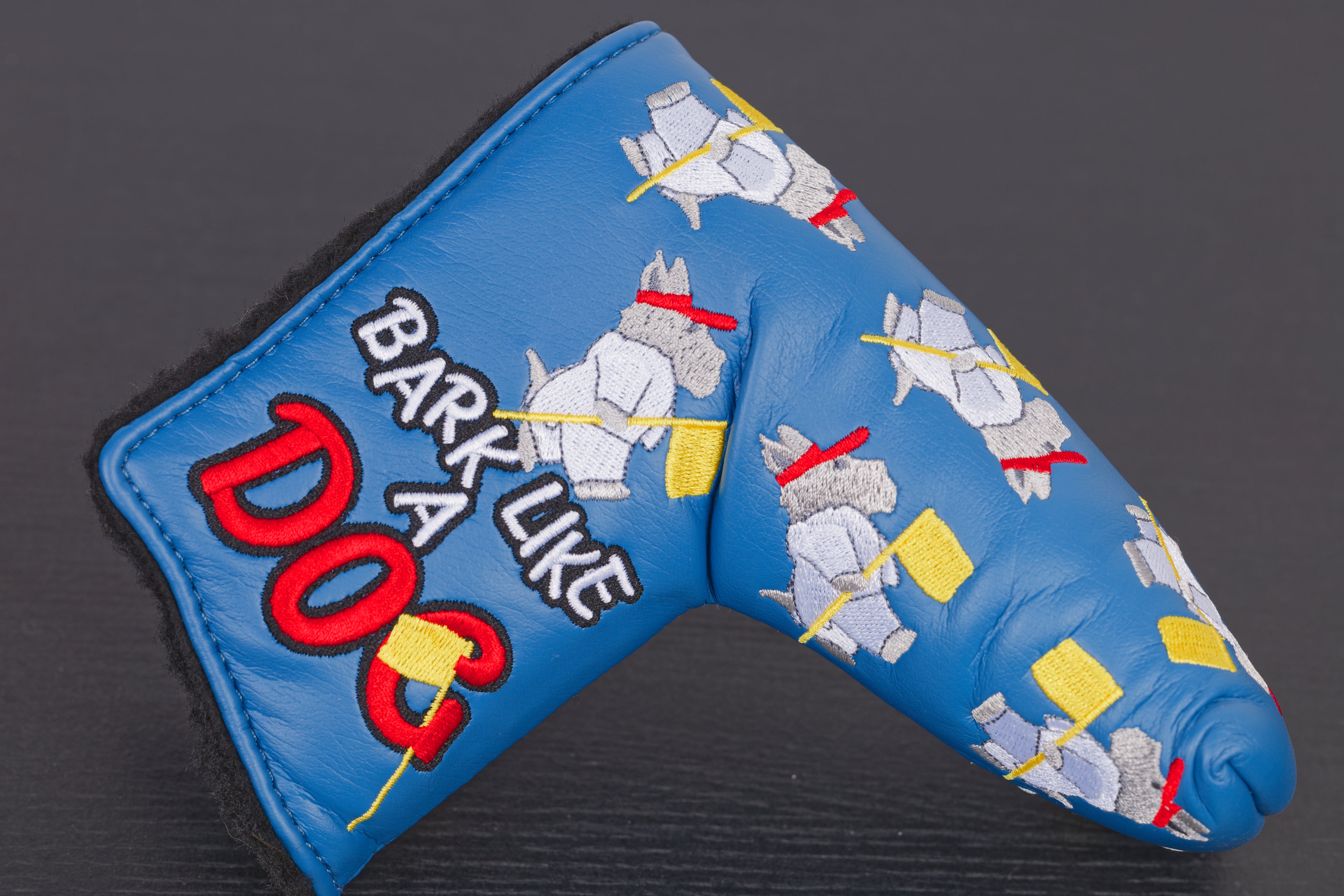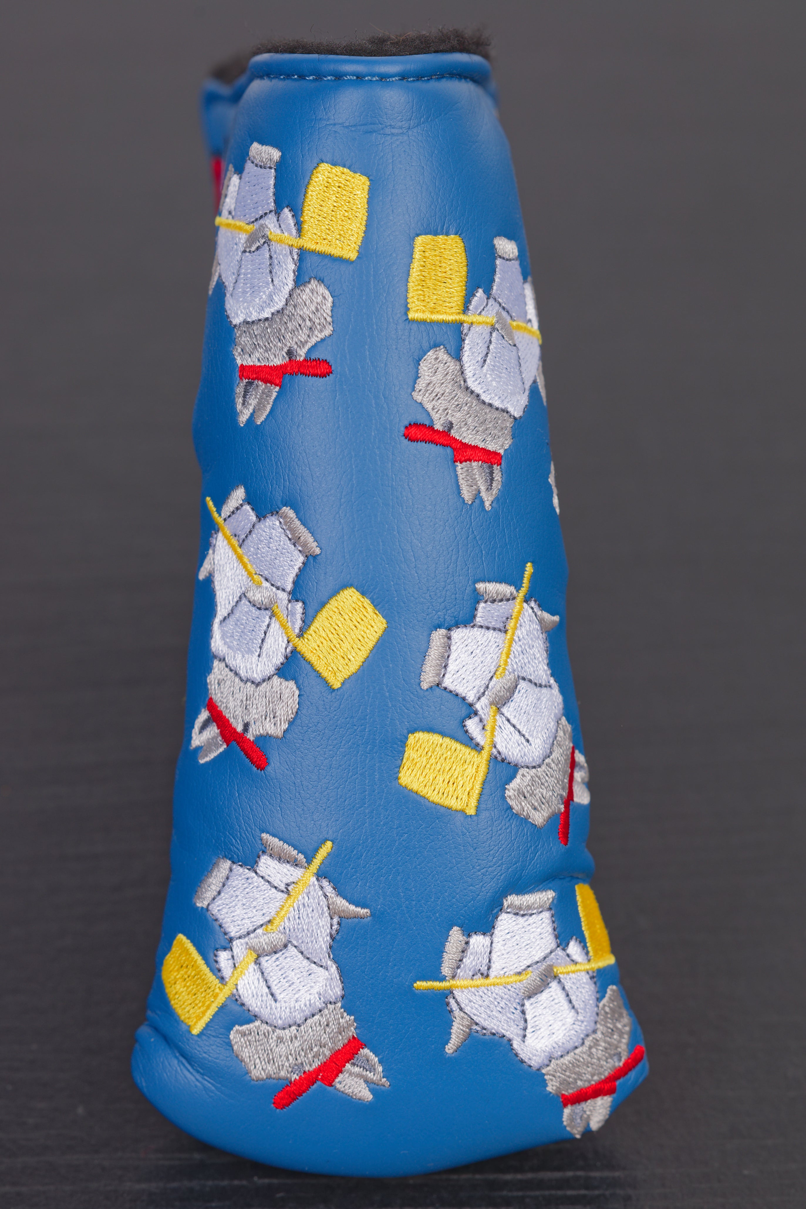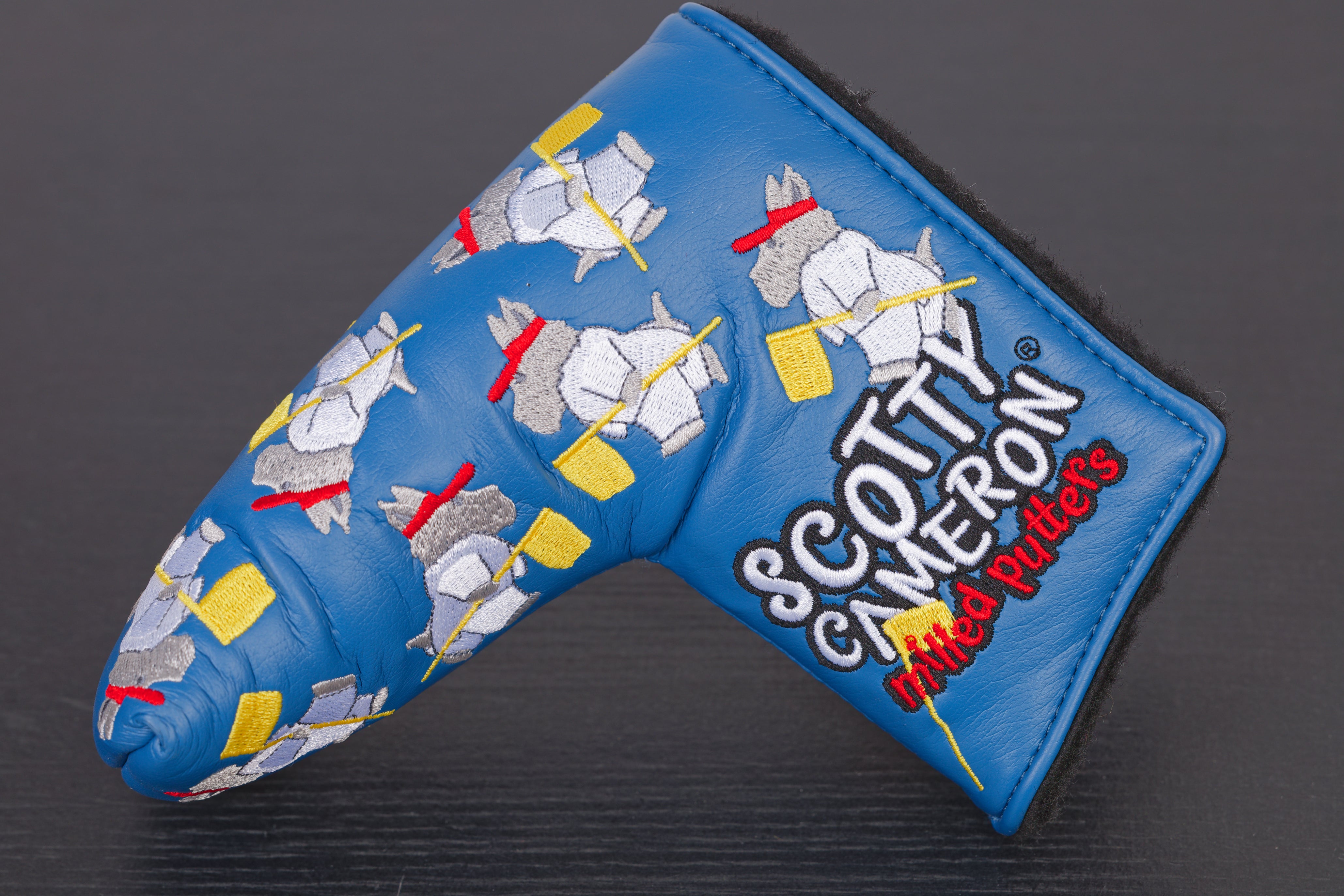 Additional Info.: Bright blue cover, with Scotty Dog's all over, which are wearing Augusta white overall's and carrying pin flags. Scotty detailing either side.