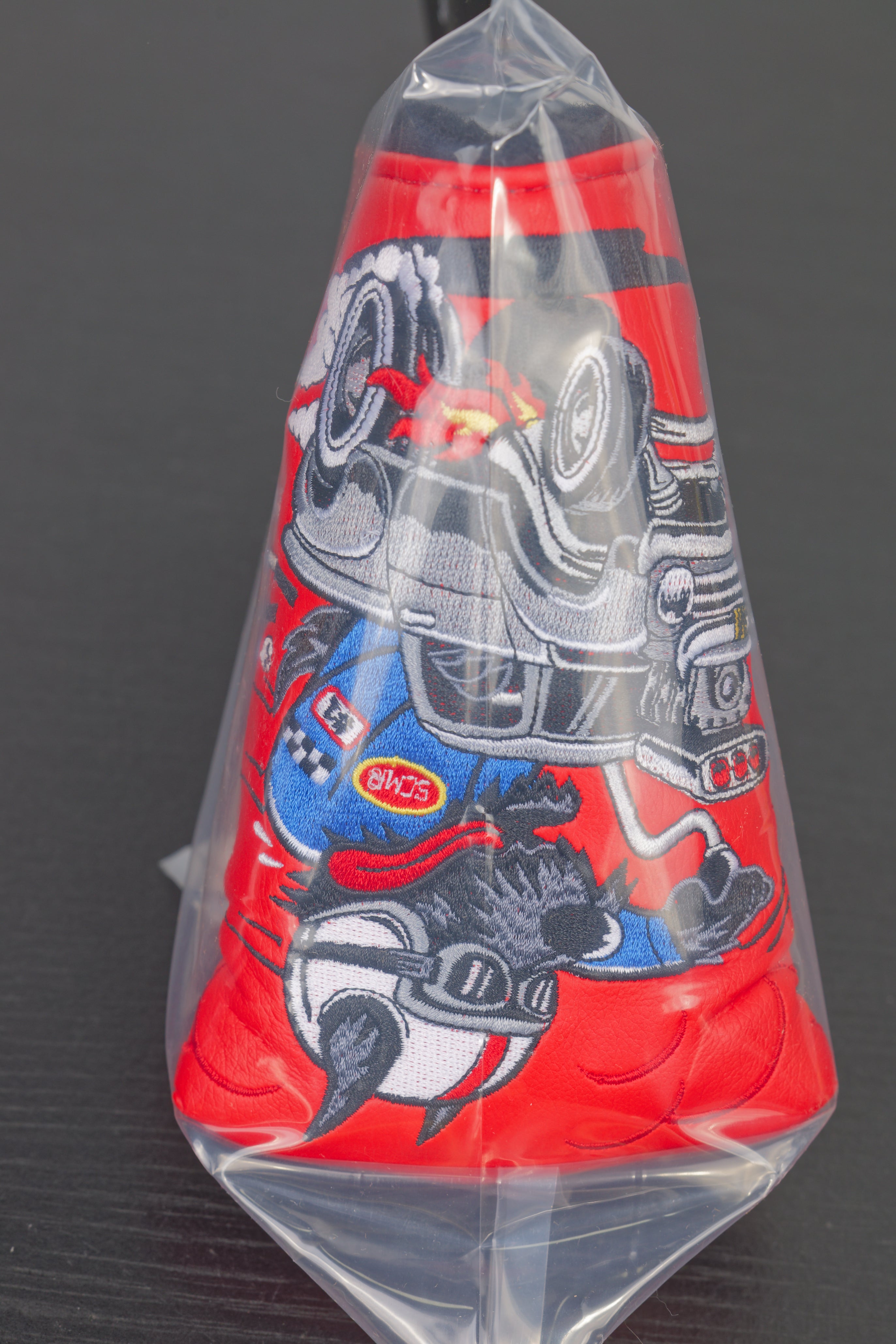 Additional Info.: Easily the best Speed Shop release headcover yet and only made available in mid mallet size. Scotty detailing either side, with large Industrial Speed Dog on top of this bright red cover.