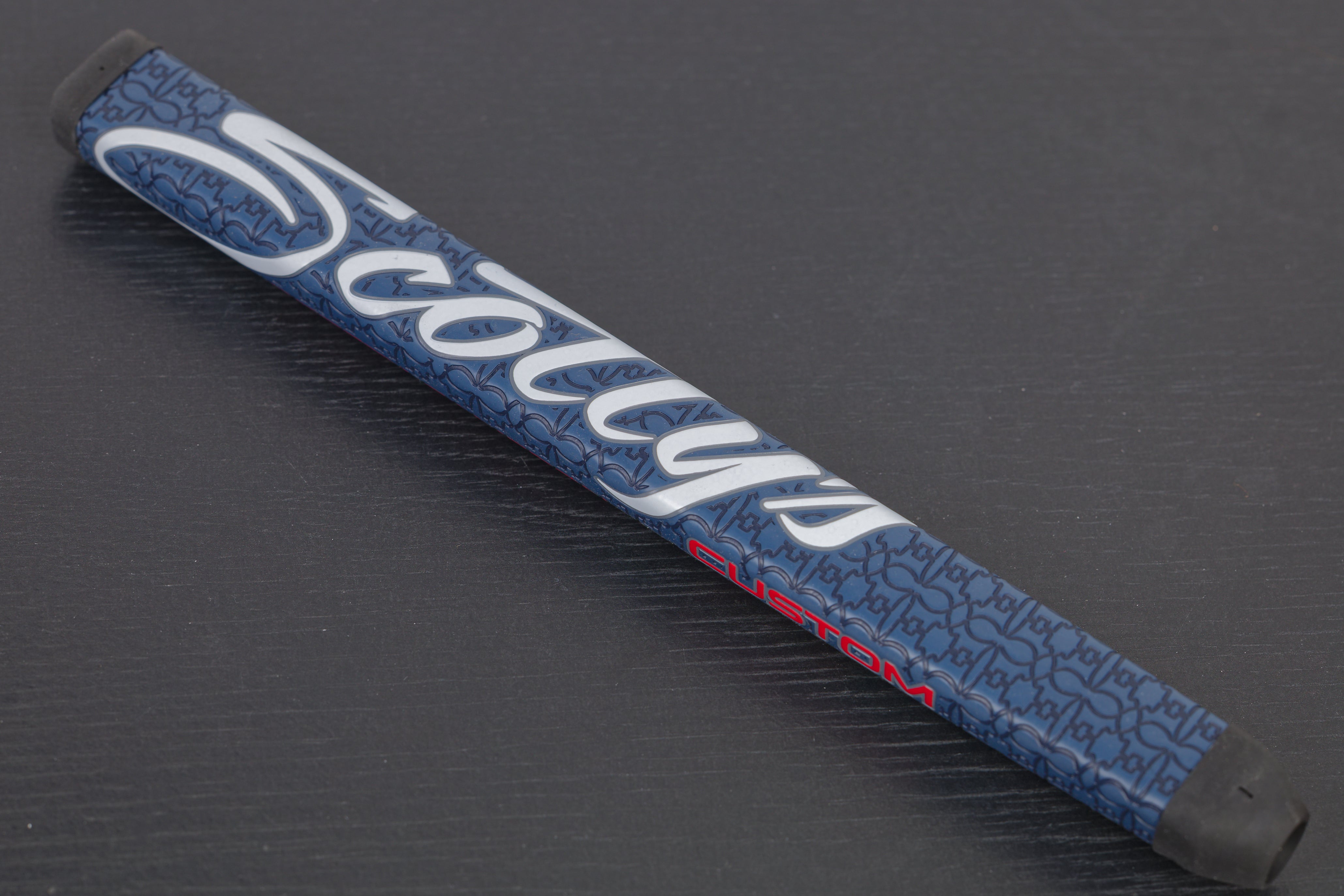 Additional Info.: Scotty's newest style of grip, finally comes in a "Paddle" shape, with large flat front. Cleanly pulled from a putter just back from the Custom Shop. Small amount of tape residue may still be evident. Guide to Paddle grip sizes viewable