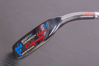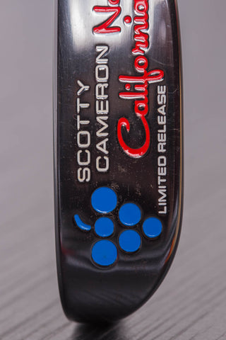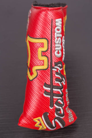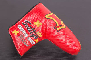 Additional Info.: One of the greatest limited release putters ever, previously restored by Scotty's Custom Shop a few years back in their then available Gun Blue finish, with White, Red and Blue paintfill...perfectly put alongside the red JYD cover and CS grip. Showing some signs of oxidisation, with minimal playing marks. Grip is slightly dirty, as per usual and headcover is in excellent condition, with only the velcro showing signs of use.